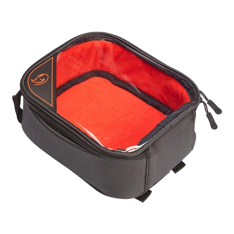 The K-Tek KGBMX Stingray Gizmo-X, Medium Bag (Orange interior) is a multi-purpose bag with a see-through top-lid that provides compact organization of cables, adapters, wireless audio transmitters, batteries, lavaliere accessories, and more. It can be used as a utility transport or case in sound reinforcement for several on-set applications.