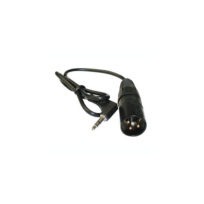 This PSC camcorder microphone input cable has the following connectors/plug: 3-Pin XLR Male to Right Angle 1/8 Inch Stereo Mini Male. Length: 18 in
