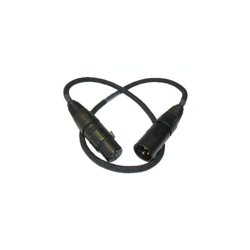 This PSC 2' Cloth Cable connects a shotgun microphone mounted on a video camera to the camera's XLR mic input. The cloth insulation reduces camera motor noise from being captured in your audio.
