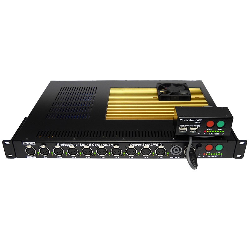 The PSC Power Star LiFE-HD is a heavy duty version of the Power Star LiFE. This version was designed to provide power to your entire sound or video cart including feeding an AC inverter that can power a Yamaha OV1 or similar AC powered mixer. This heavy duty version comes standard with a dedicated 16 amp output that is designed to power and external AC inverter and additional internal modifications to allow for greater power output and cooling. This single rack space rechargeable power supply will provide you with the ultimate power solution for your sound or video cart.