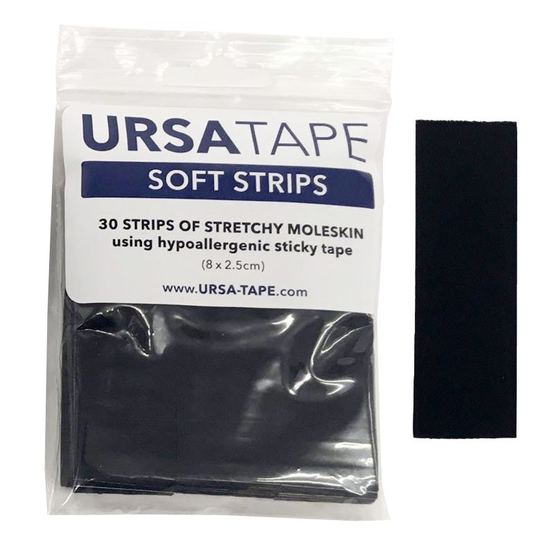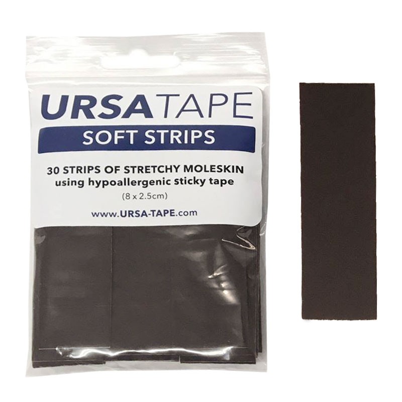 URSA Soft Strips are strips of stretchy moleskin applied to hypoallergenic sticky tape. Great for reducing clothing rustle, camouflaging microphones, or covering things that might rub and irritate talent. Available in packs of 30 small strips (8 x 2.5cm) in Beige, Black, Brown, and White.