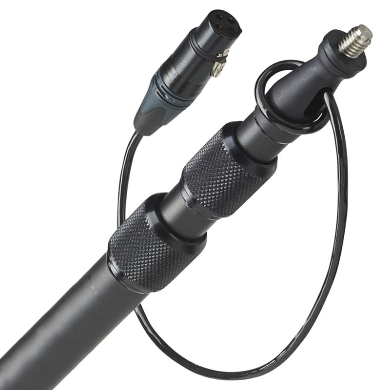 The K-Tek KE-69CC Avalon Aluminum Boom Pole has a collapsed length of 2'4" | 71 cm and extends to 5'9" | 175 cm. This 3-section Aluminum Boompole is cabled and weighs 1.05 lbs | 477 g. The top attachment is a 3/8" – 16 male thread and the bottom attachment is a 3-pin Male XLR – Straight Exit. Using the Avalon knurled collars on K-Tek's locking mechanisms, this boompole is easy to transport and quick to deploy.