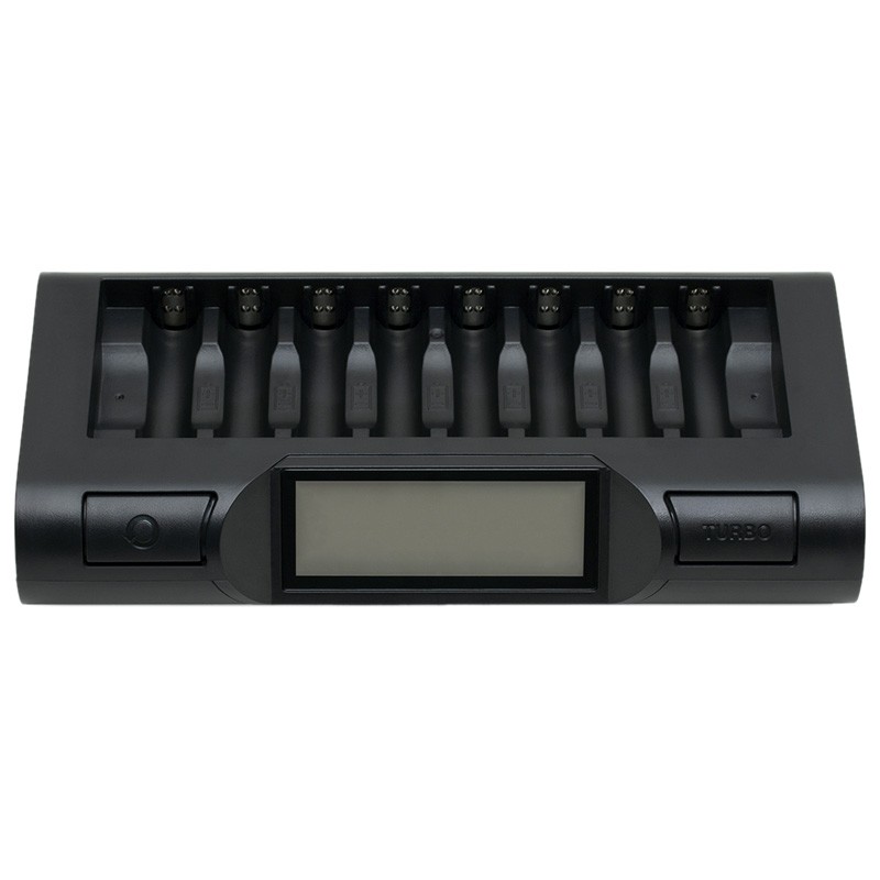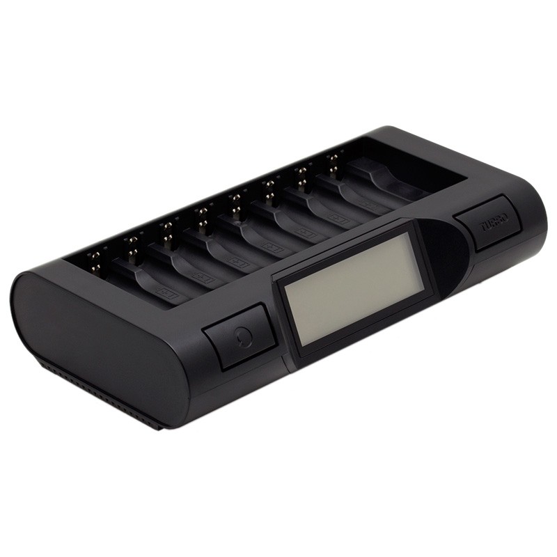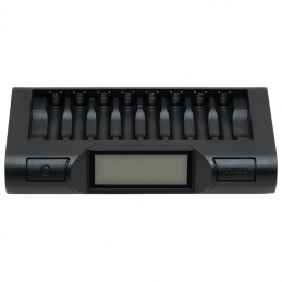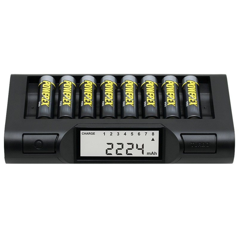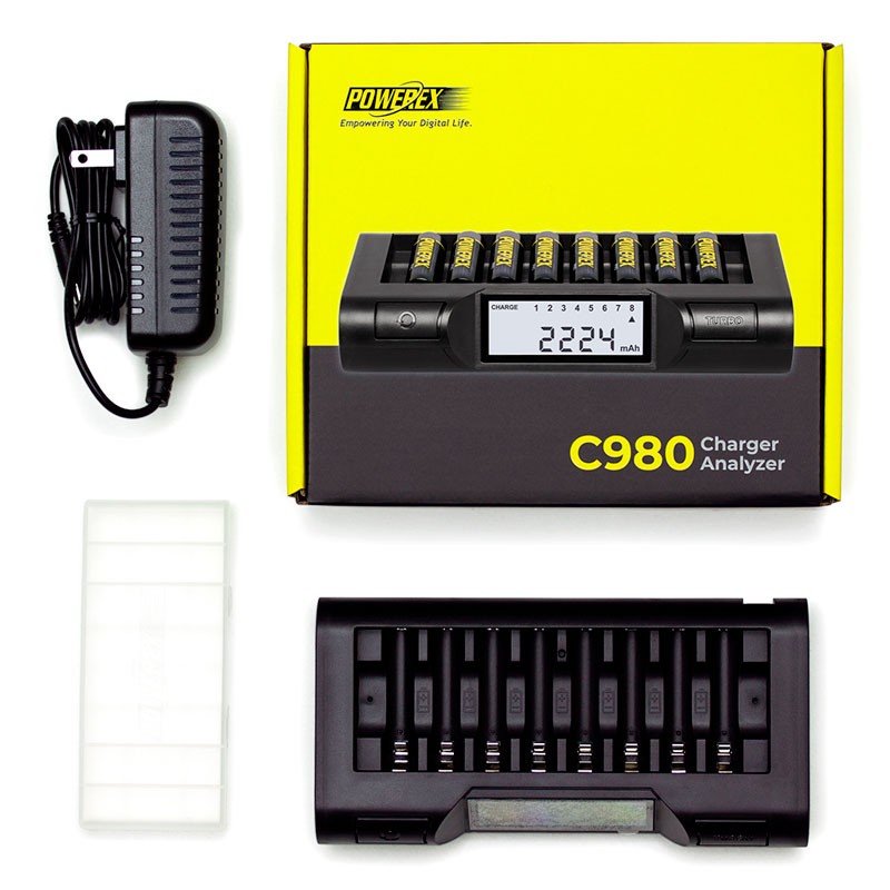 The Powerex MH-C980 Turbo Charger/Analyzer charges up to 8 AA or AAA nickel-metal hydride batteries in approximately 1 hour. This charger is the best combination of an 8-cell charger with battery health analyzing features. It has a special One-Touch Battery Health Analyzer with actual capacity readout to provide the most accurate data. The Turbo charge mode allows you to charge your batteries twice as fast while the default mode will maximize battery life. With the Thermal Management System, your batteries will stay cool during charge. For older batteries, you can use the Deep Battery Conditioning System to revitalize them. The large backlit LCD display allows you to take quick glance of the charging status.
