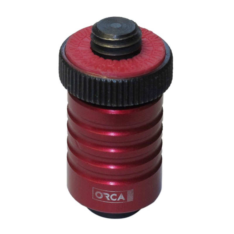 The body of the OR-45 Boom Pole Quick Release mounts onto the 3/8" thread of a microphone boom or stand. It also has interchangeable heads to allow for attachments to equipment with 3/8" and 1/4" threading.