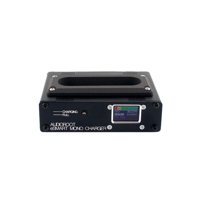 The charger is built in a rugged and lightweight aluminium housing. With no fan, it operates silently. Comes with a bright OLED screen to provide battery information to the user. This charger will charge Audioroot's eSMART batteries in under 3 hours.