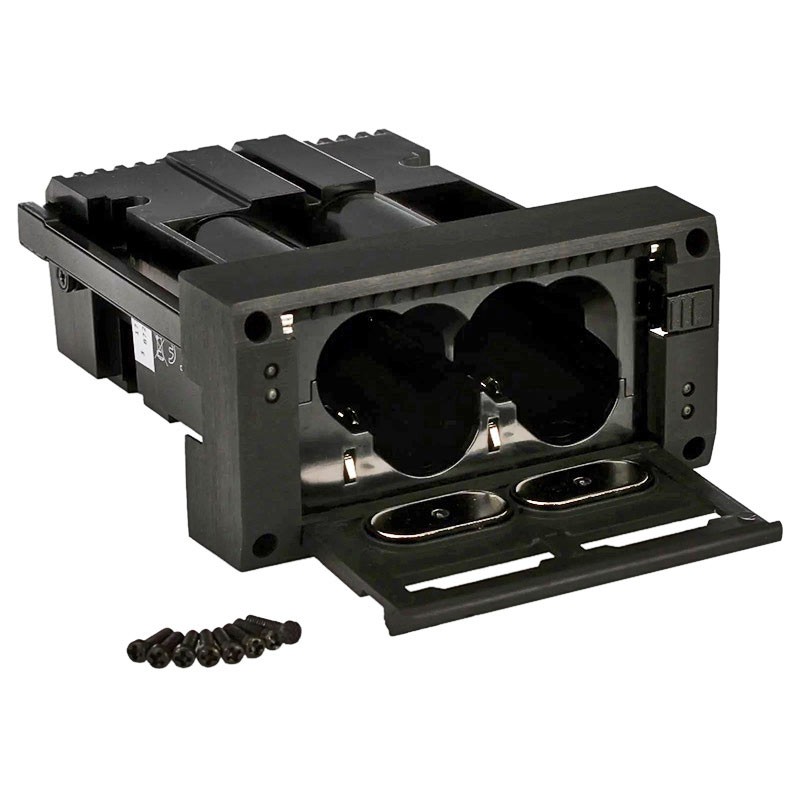 The Shure SBC-AX Charging Module charges two SB900B Rechargeable Batteries in the SBRC Rack Mount Charging Station. The SBC-AX allows SB900 batteries to be used with Shure AXT900, AXT903, and AXT904 battery charger.