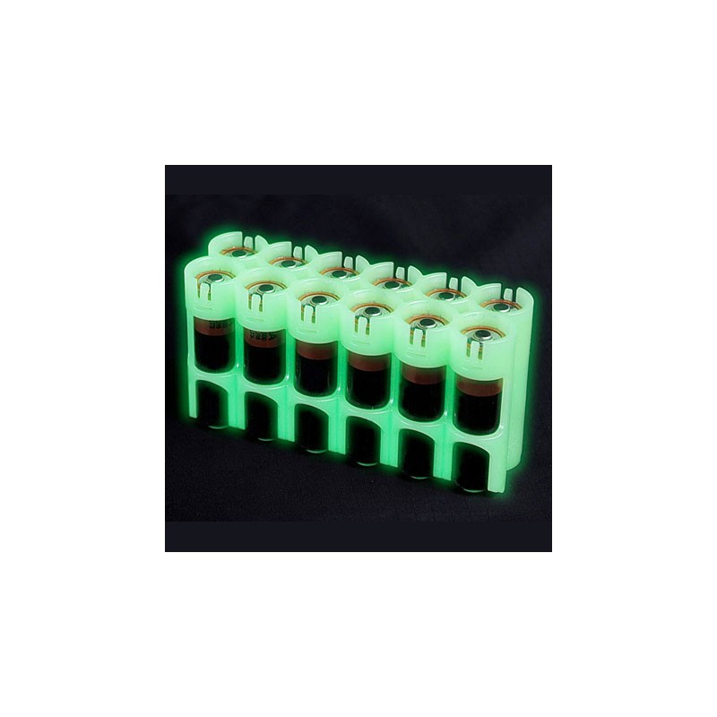 This color, Moonshine, will glow for up to 8 hours if exposed to approximately 30 minutes of light. Also available in Orange: look for PowerPax Storacell SlimLine AA Battery 12-Pack Case - Orange.