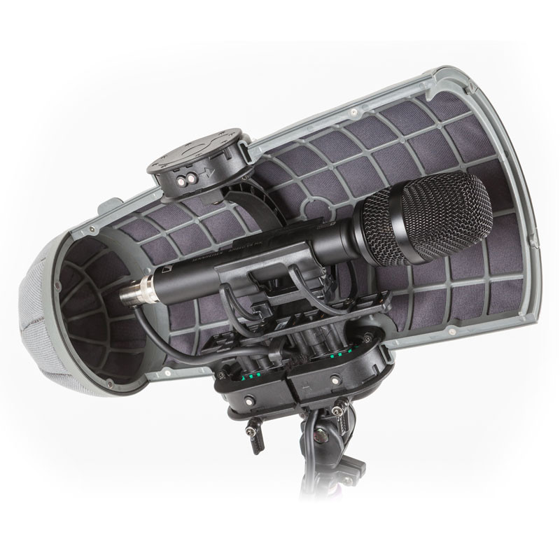 Stereo configurations are particularly susceptible to the effects of acoustic re-radiation since more microphones point at the overall surface of the basket. That's why Rycote incorporated the Floating Basket Suspension. The result is a windshield with superb vibration isolation.