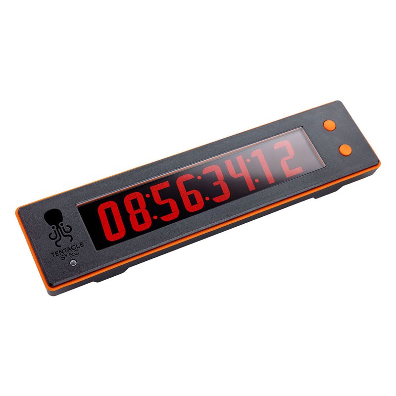 The TIMEBAR from Tentacle Sync combines multi-functionality with a high-contrast display. Equipped with OLED technology, the TIMEBAR features a unique alphanumeric design that ensures excellent readability making it suitable for use both in the studio and on set. It serves as a reliable timecode generator or as a timecode display for directors and the team.