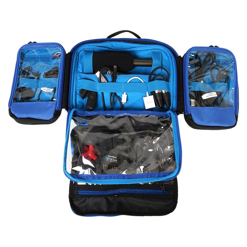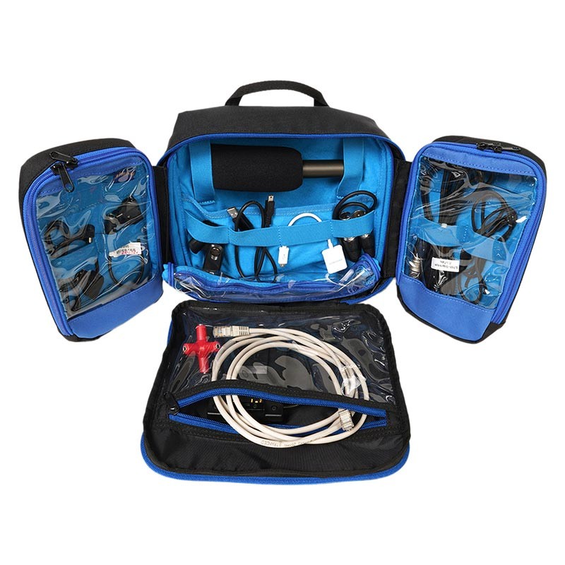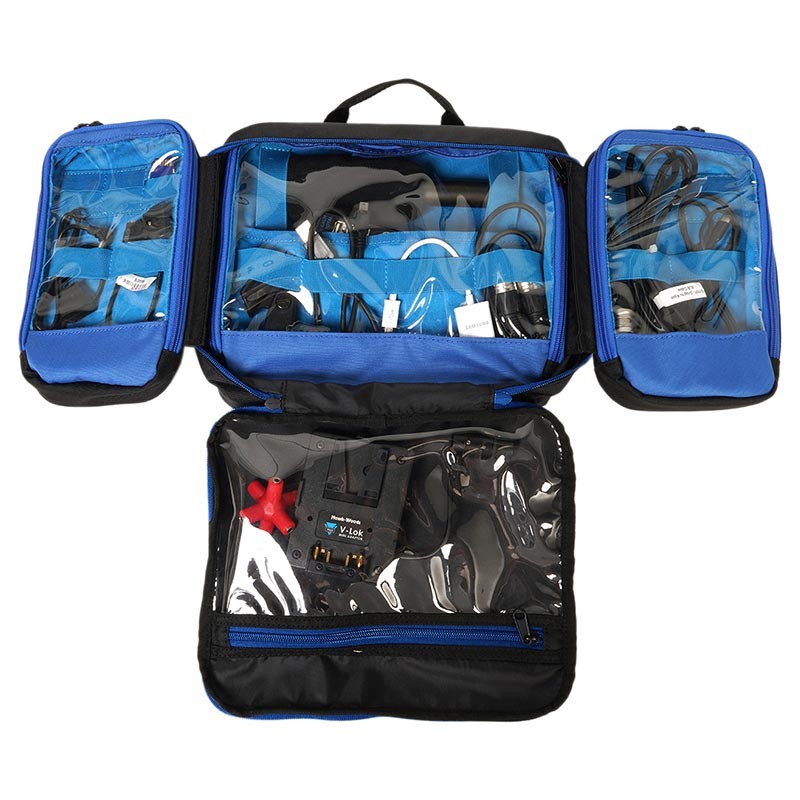The Orca OR-119 Audio/Video Organizer Pouch is designed to securely store microphones, connectors, cables, SD and CF cards, hard drives, wireless microphone systems and more. Each of the three sections of the pouch comes with a zipper and rubber webbing for easy storage. The pouch sections are padded with transparent pockets for easy viewing and protection of your equipment.