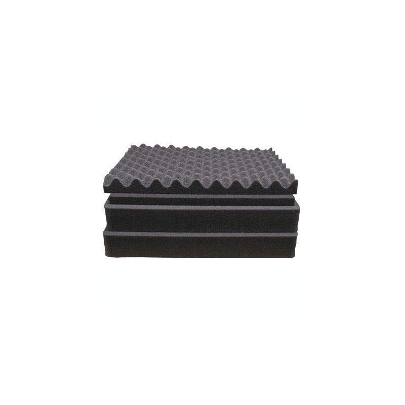 Replacement polyurethane foam for the Pelican 1550 Case. The set consists of one convoluted top lid foam, two Pick 'N' Pluck foam, and one 1" smooth bottom foam.