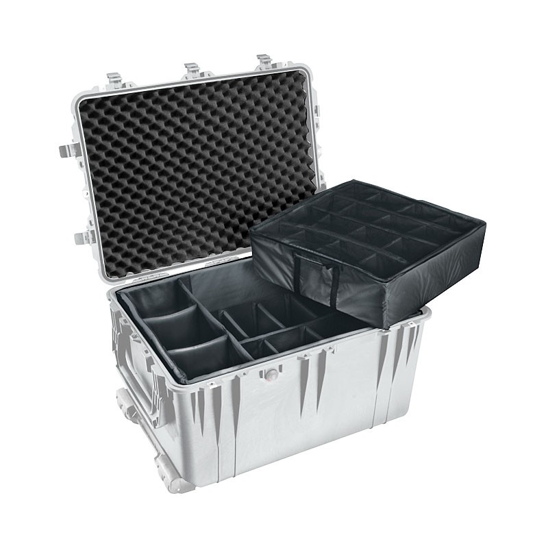 The Pelican 1665 Padded Divider Set is designed to organize small and large items. The dividers are made from ballistic nylon and are padded and flexible. They have Touch Fastener on the edges that are used to attach the dividers to the tray or other dividers. The top has a mesh zipper cover to keep contents in place. One top lid foam section is included. This is an accessory for the Pelican 1660 Case.