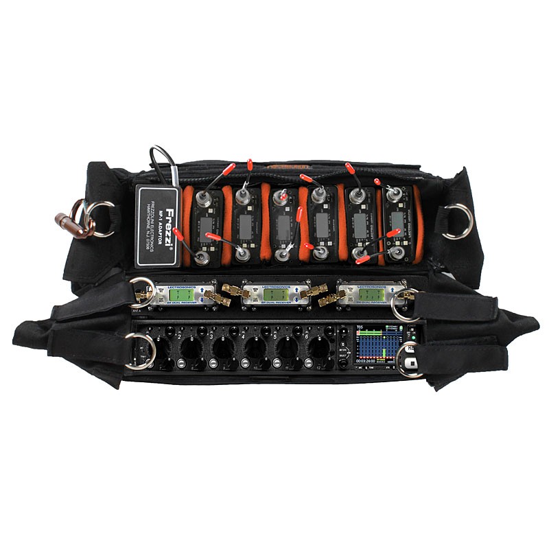 This MXC bag combines both the recorder and receiver compartments to form one ridged structural design. The MXC provides a much stronger frame and offers greater support. The bag has two large pockets on either side, perfect for an NP1 type battery or left and right transmitter sends. Located within these pockets are additional transmitter attachment points.