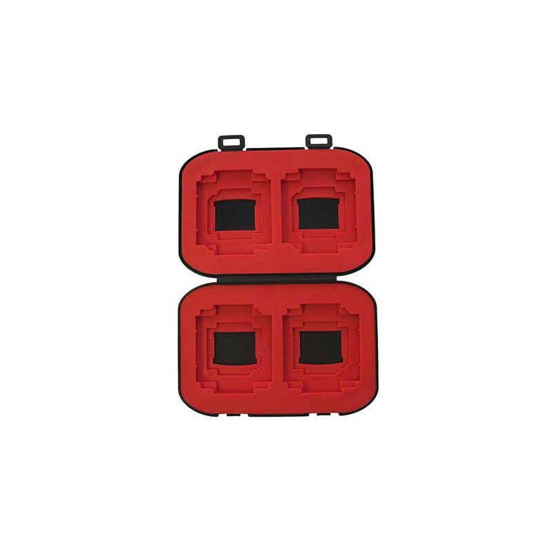 This pocket-sized Universal Field Pack has an outer shell made of hard, opaque, polypropylene plastic and is enhanced by dual stay-put latches. The rubberized interior liner holds (4) each of today's most commonly used cards and mini cards with their adapters, including: CompactFlash I or II, Memory Stick, MicroSD w/Adapter, MMC, MMC Micro w/Adapter, MMC Mobile w/Adapter, MS Pro Duo, 1" Hard Drive, SD, Smart Media, and xD.