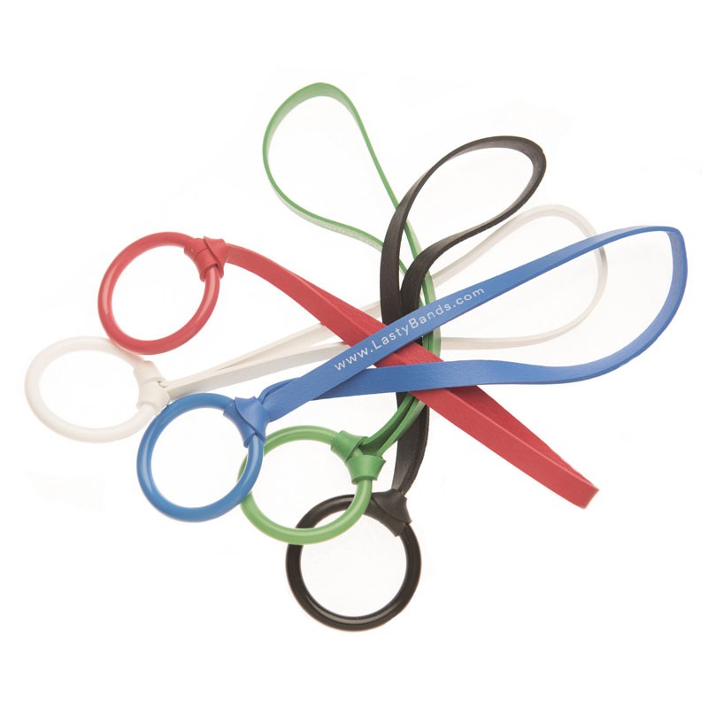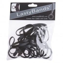 This 10 pack of LastyBands is the perfect tool for strapping one item to another or keeping those cords and cables prim and proper. Wrap it around, loop it through and you're set! The ring allows for a secure hold on the elastic and enables it to be hung from a hook, knob, or numerous other items. Available colors: Black or Variety Pack (contains two each white, black, red, blue, green).