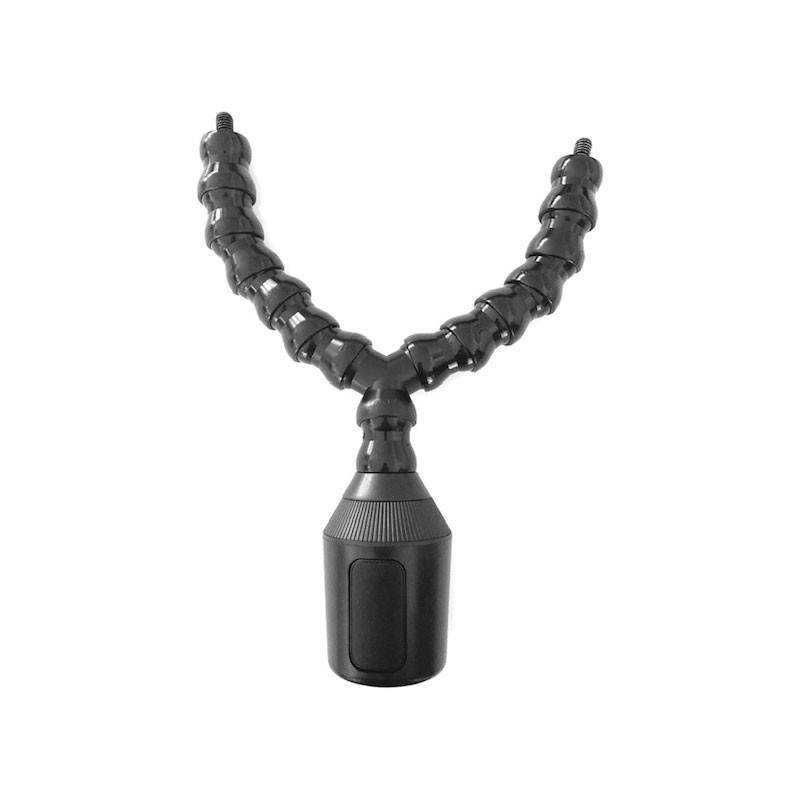 The Duo Rig by OISPHOOT utilizes the same convenient twisting base as the Cup Rig and fits most of similar-sized vehicle cup holders. The Duo Rig allows two mics to be mounted in place instead of just one. Using genuine Loc-Line snap together ball-and-socket pieces allows users to adjust the length of each arm to suit their need and position. Save time and space with the Duo Rig.