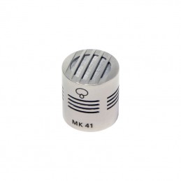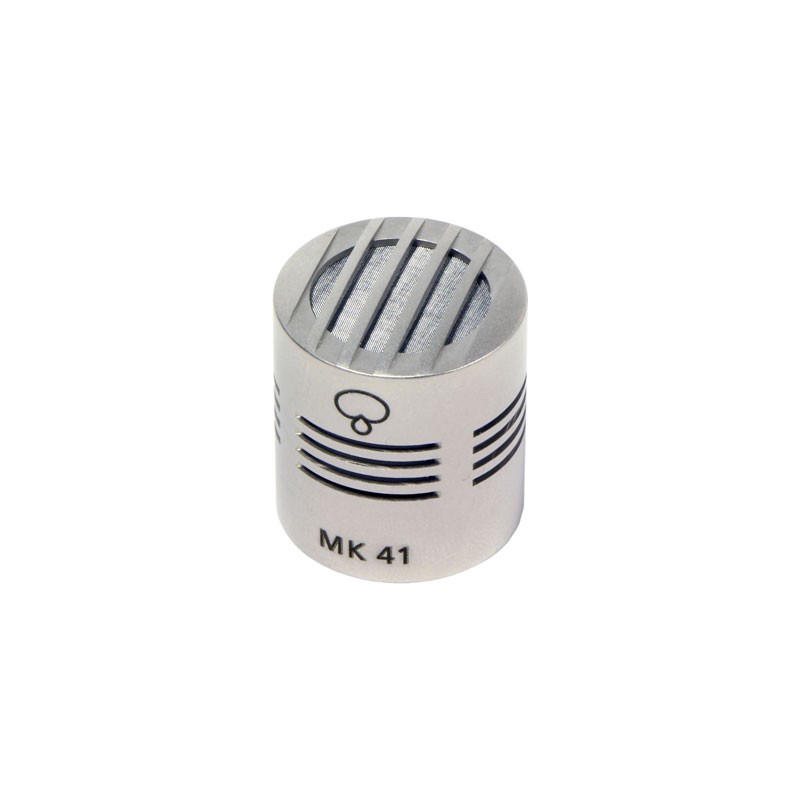 The Schoeps MK41 is part of their Colette Series of modular capsules designed for use with the CMC preamplifiers. Sound arriving from off axis is attenuated even more than with a standard cardioid. The pickup is "drier" and less susceptible to acoustic feedback, provided there isn't a strong sound source directly on the rear axis of the microphone. Its directivity is highly independent of frequency, so that even sounds arriving off axis and reverberant sound are registered without coloration. Consequently, even distant placement of the microphone produces a very natural sound pickup. It is often preferred for use in film sound recording and as a spot microphone in orchestras. Choose from surface finish in Matte Gray (g) or Nickel (ni).