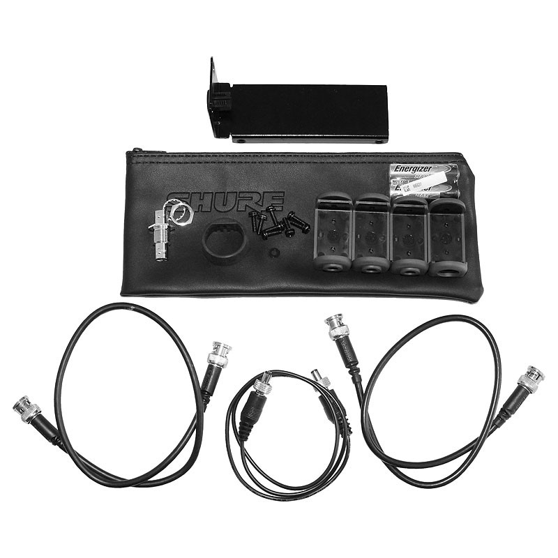 This used Shure ULXD4/ULXD1 Wireless System - G50 Band: 470 - 534 MHz comes with the following: (1) ULXD4 Digital Wireless Receiver with (2) 1/2 wave dipole antennas, (1) ULXD1 Digital Wireless Transmitter with antenna, short rackmount bracket, vinyl pouch for transmitter, (2) AA batteries, front mount antenna kit (BNC coaxial cables, bulkhead adapter), and carrying case. Click here for enlarged view of 8-861SHU06.